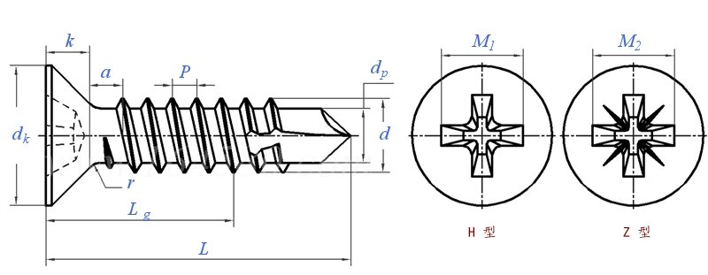 Cross recessed countersunk head drilling tail nail