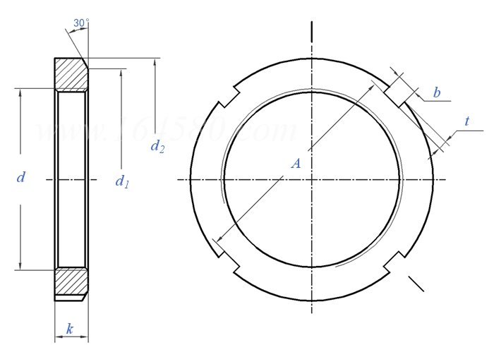 ① The groove bottom distance A is used for nuts below M 100 x 2; Slot depth t=design dimension. (Nutgrundabstand A f ü r Nutmutern bis d=M 100 x 2; Klamerma ß t=Konstruktionsma ß)